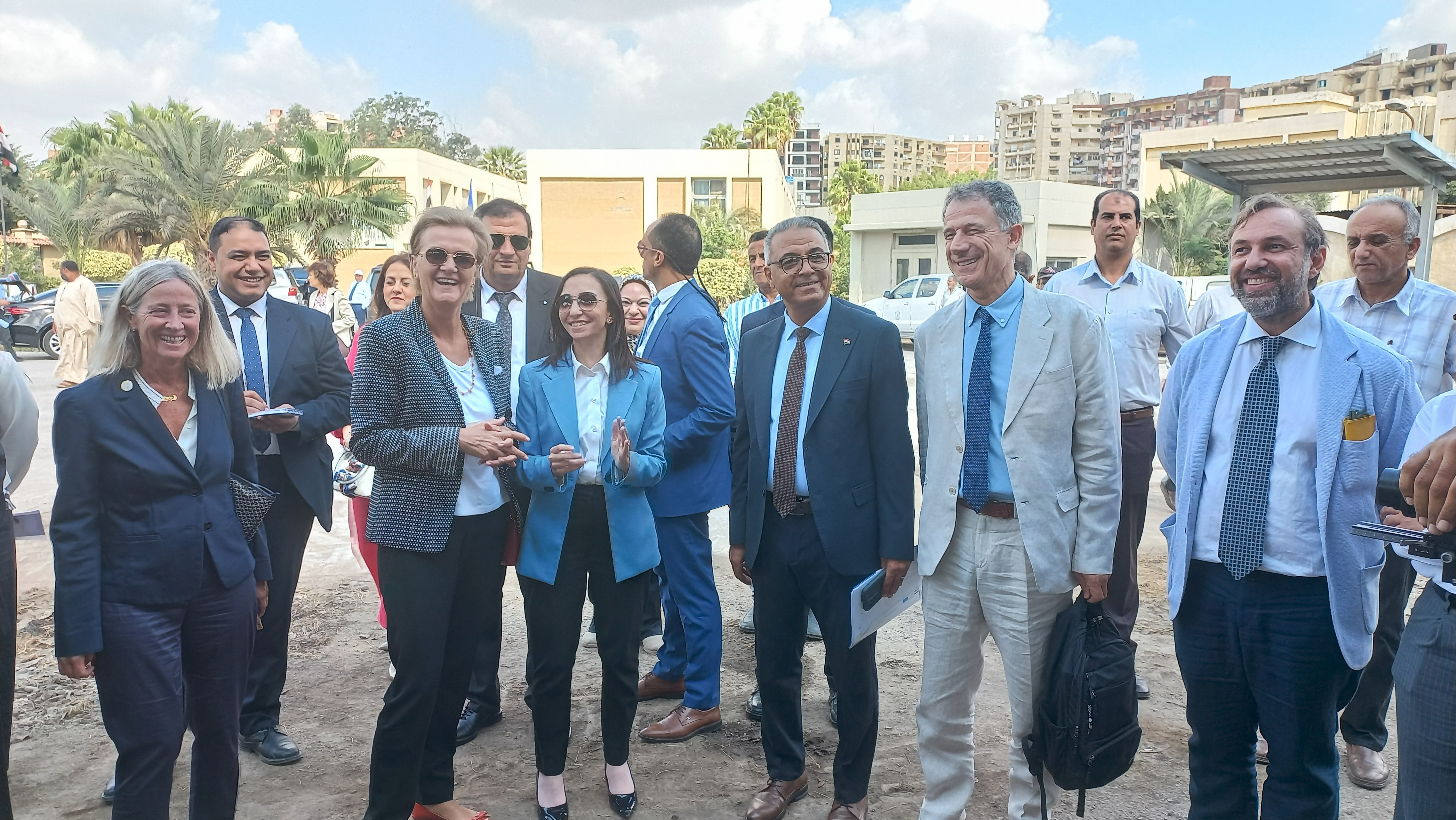 In support of the strategic partnership between Egypt and the European Union in the agricultural sector, H.E. Dr. Jacqueline Azar, Governor of Beheira, received H.E. the EU Ambassador to Egypt and Dr. Tiberio Chiari, Director of the Italian Agency for Development Cooperation (AICS) in Cairo, during an official visit to Beheira Governorate. The visit included the Damanhour Agricultural Service Station to follow up on the implementation of the EU-KAFI Programme, which aims to support and improve field crop production in Egypt.